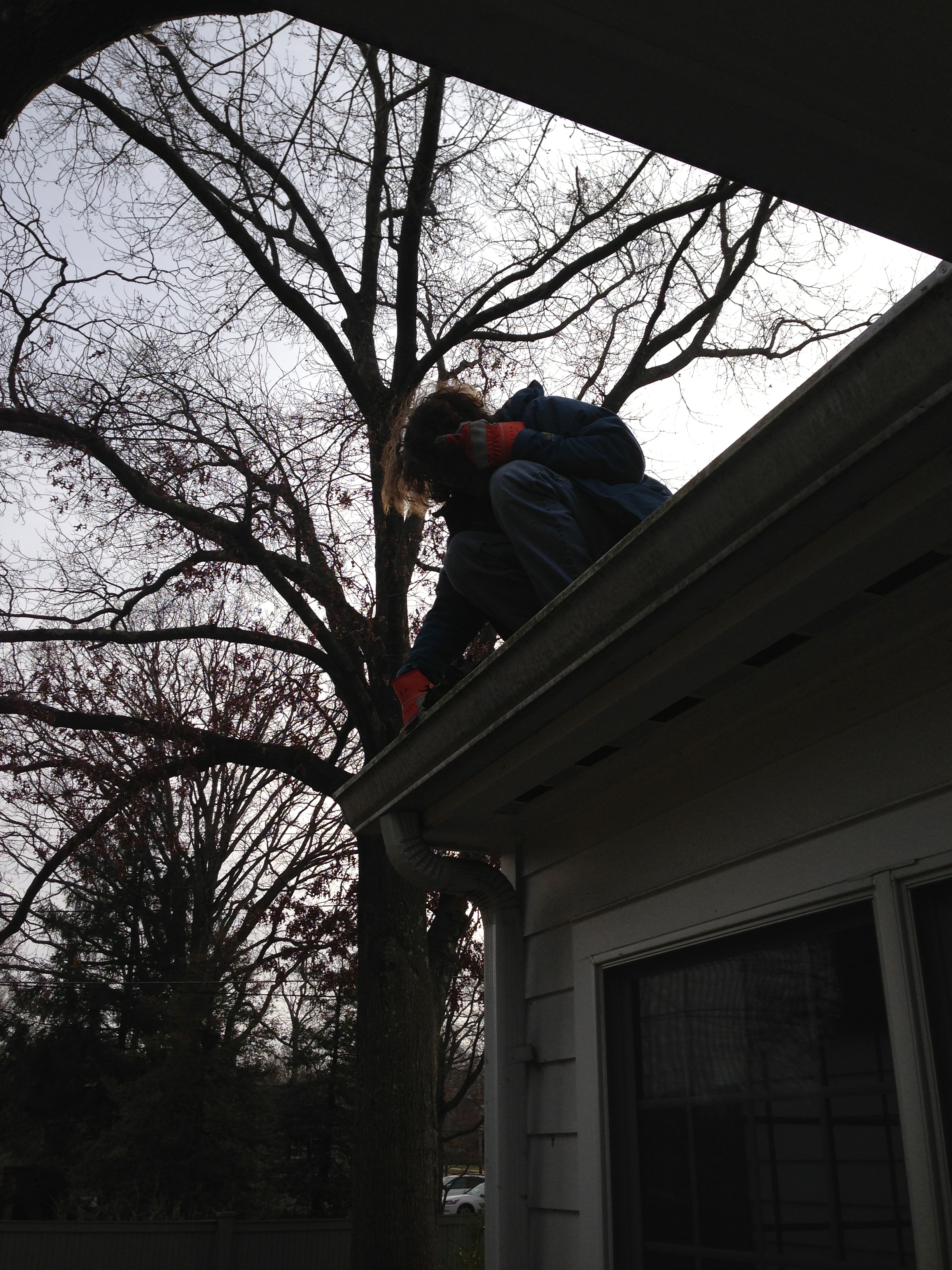 Men at work. The beautiful. amazing, and dare I say, unusual thing about these scenes are that the men are working quietly, and getting exercise and fresh air, not to mention gaining a sense of accomplishment. Who doesn’t love clean gutters?! Um, well, I don’t think about them very often, so I guess love is going overboard. I’m not even sure what terrible things might occur if water and leaves were to coexist in our gutters. Of course I realize that the gutters would become clogged, and water would run down the side of the house, and not neatly through the downspouts. It’s just not the sort of thing this blogger thinks about often. I also did my small part today: I planned my morning so that I had those extra ten minutes to walk to the gym instead of driving. Not only did I get fresh air there and back, but because I was on foot, had a chance to have a 1.5 minute conversation with a friend I rarely see while she was stuck at the red light. (This pleasant impromptu meeting does confirm my fear that it is best not to walk when feeling antisocial. There is no sensible route that doesn’t involve crossing one of the main roads in town, while standing out in the open for several minutes. Yes, I can be a real hermit at times.)